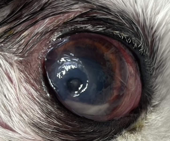 猫で認められる疾患で、耳の内側に黒色〜青黒いドーム状の小さな嚢胞(膨らみ)が多数形成されるのが特徴です。加齢性変化、慢性的な耳の炎症、先天性の耳垢腺導管の閉塞などが関係しているのではないかと考えられています。特徴的な見た目で診断を考えますが、腫瘍などとの区別が必要になる場合もあるため、必要に応じて細胞診検査などを行います。治療は、状況に応じて、耳の洗浄、内服薬や点耳薬の使用、レーザー治療、外科的切除などを検討していきます。重症になると、嚢胞が大きくなり、耳の入り口を塞いでしまうこともあります。気になる症状がある場合には、お早めにご相談ください。